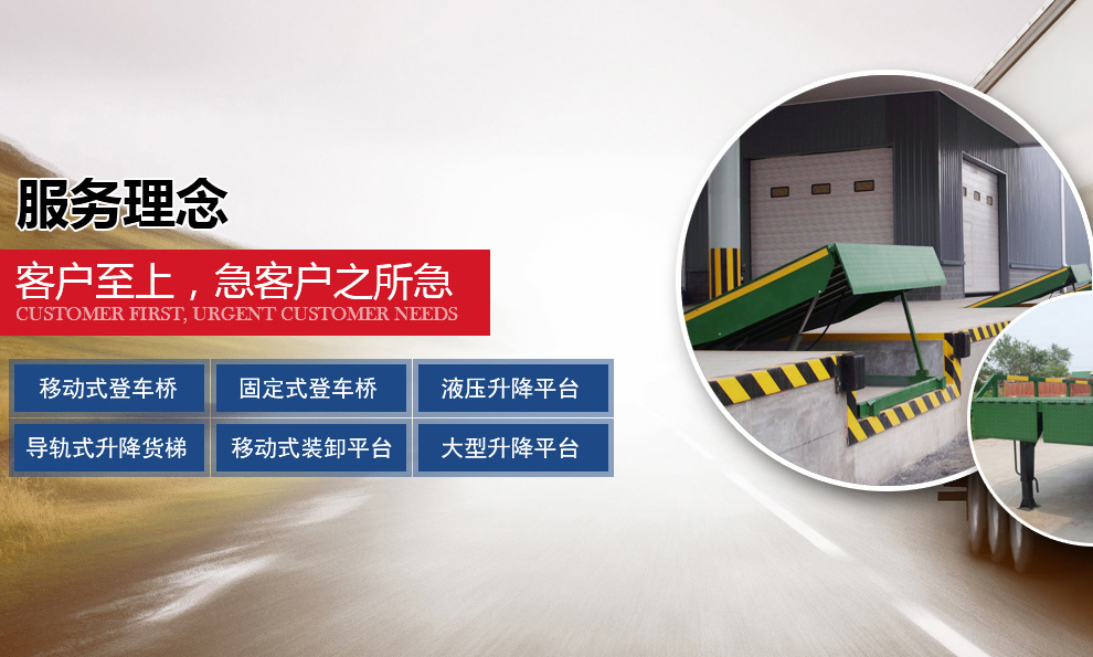 隨著國內(nèi)及國際市場需求的不斷擴(kuò)大,公司也在不斷引進(jìn)國內(nèi)外的先進(jìn)技術(shù)來充實(shí)自身。公司先后設(shè)計(jì)研發(fā)出了,大小型貨車配裝的:汽車液壓尾板,叉車裝卸貨用的:移動式登車橋;庫房外貨臺配裝的:固定式液壓升降平臺(貨臺高度液壓調(diào)節(jié)板);庫房內(nèi)外高層輸送貨物:導(dǎo)軌式升降貨梯,液壓升降平臺,旋轉(zhuǎn)液壓升降臺,及百噸位大型升降臺,等多種的先進(jìn)裝卸裝備,適應(yīng)用于:工廠,廠礦,倉庫,化工,食品,郵政,流水線作業(yè)配套及物流運(yùn)輸?shù)缺姸囝I(lǐng)域。